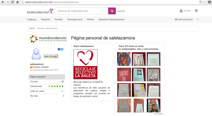 Además de en internet, algunos de los artículos serán puestos a disposición del público en mercadillos y actos puntuales, como la recogida y venta de libros usados que se organizará este sábado a partir de las 12:30 horas en la Plaza Mayor de Toro con motivo de la Fiesta de la Misericordia.