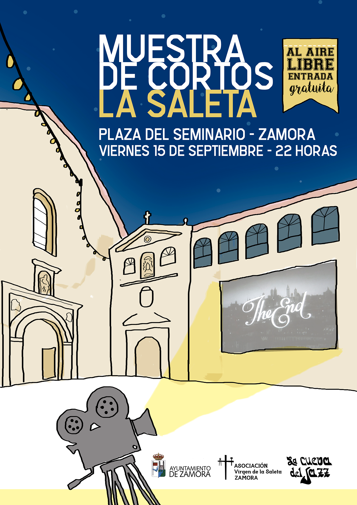 El próximo viernes 15 de septiembre, con motivo de la celebración del Triduo a la Virgen de la Saleta, nuestra Asociación organizará, en colaboración con el Excmo. Ayuntamiento de Zamora y La Cueva del Jazz, una muestra de cortometrajes al aire libre en la Plaza del Seminario.