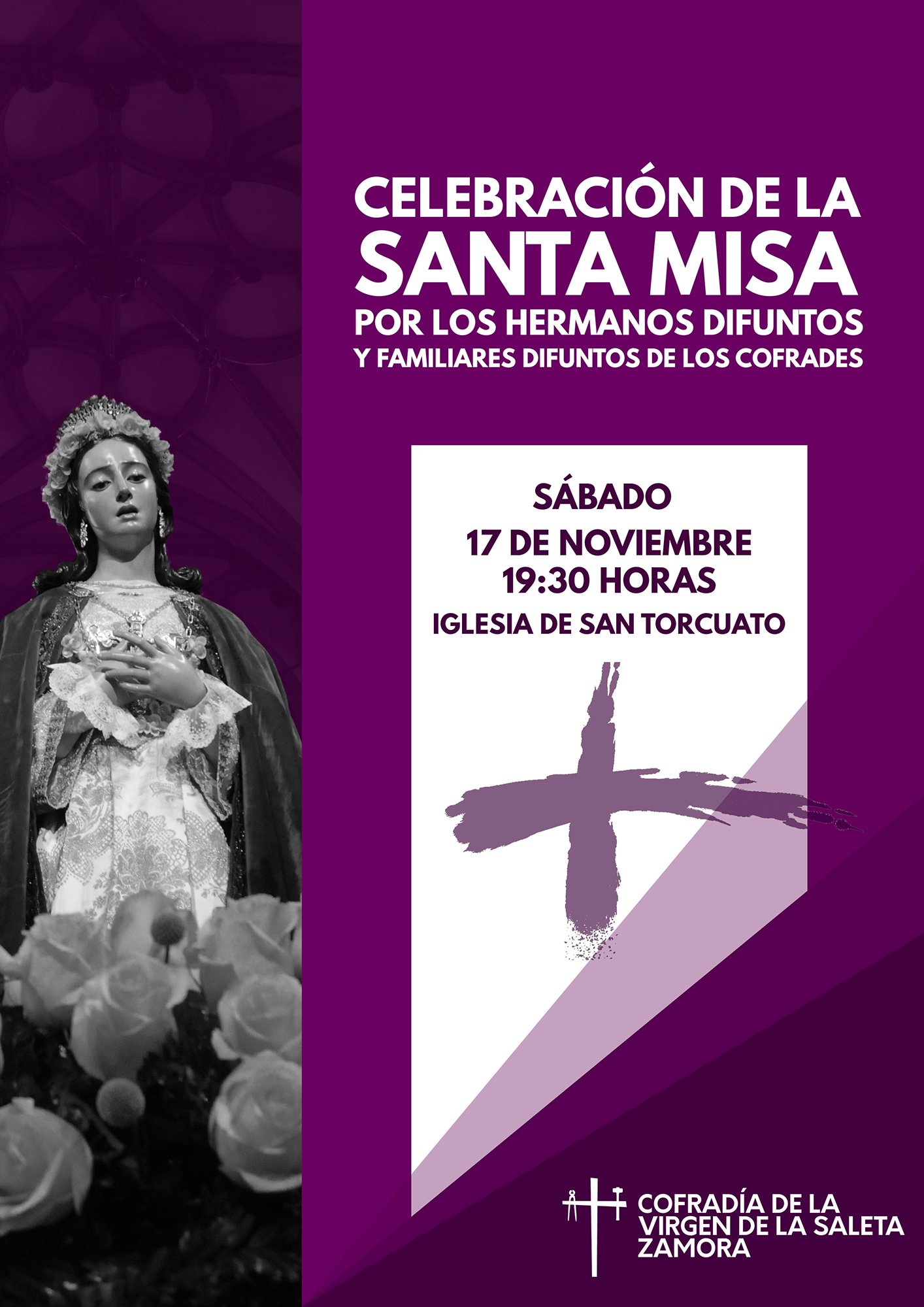 Los cofrades que hayan perdido en el último año a algún ser querido y deseen que sea nombrado expresamente en el memento de difuntos de la Misa pueden solicitarlo con antelación en el teléfono de la Cofradía (623177875) o en el correo cofradiasaletazamora@gmail.com.