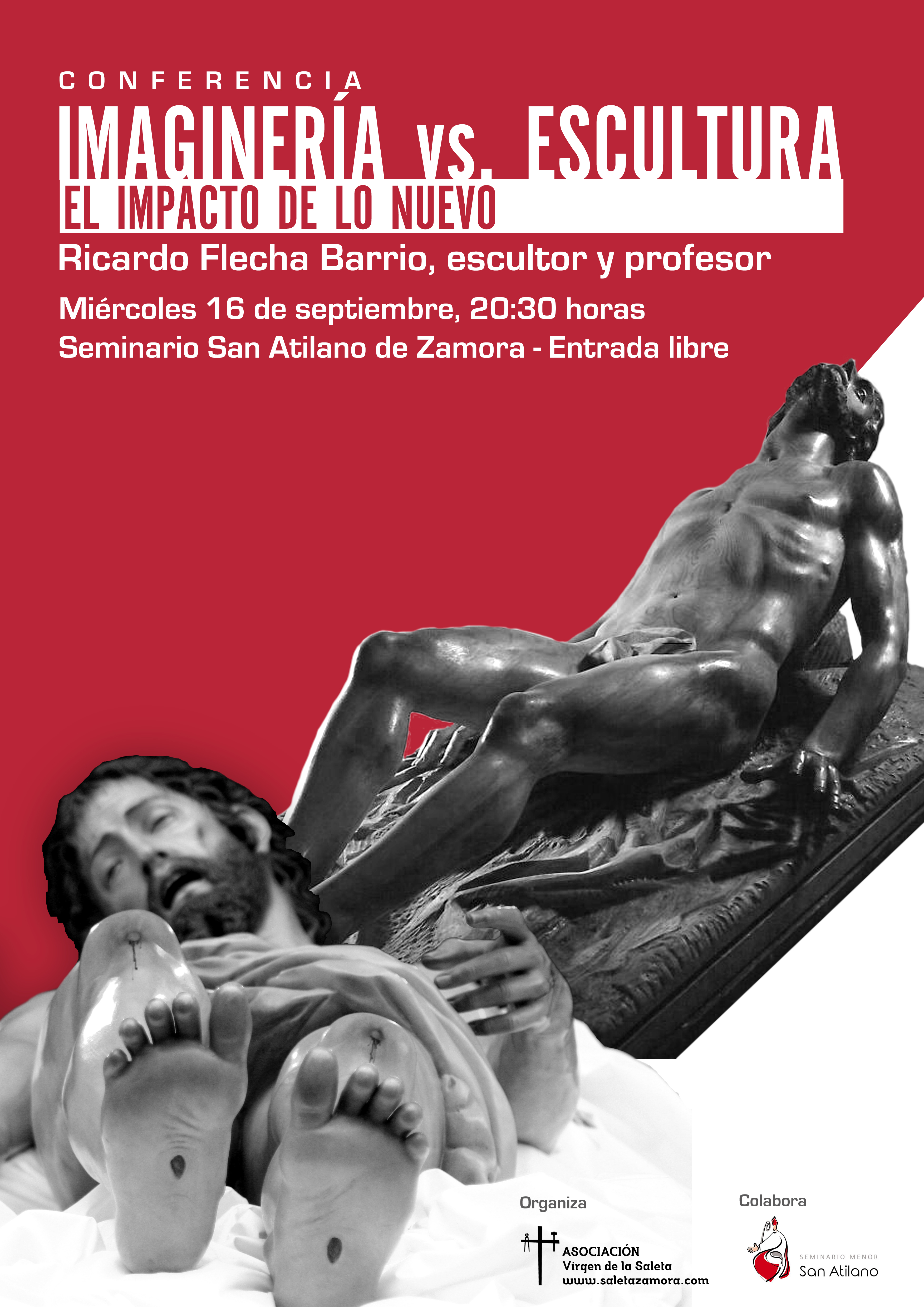 Mañana, con motivo de los actos organizados para acompañar la celebración del Triduo a la Virgen de la Saleta, la Asociación ha programado una conferencia del escultor Ricardo Flecha. Bajo el título de “Imaginería vs. escultura: el impacto de lo nuevo” el profesor de talla en madera de la Escuela de Arte de Zamora disertará sobre el proceso creativo de la escultura religiosa y la brecha abierta en el mismo con el nacimiento de la imaginería, arte que se popularizó en Francia a mediados del siglo XIX.